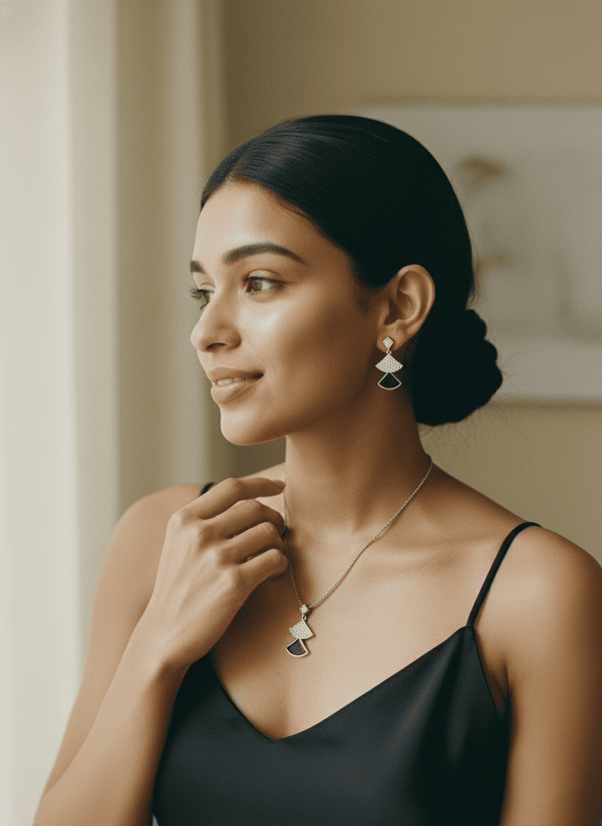• Versatile Coordination: A perfectly balanced pendant and earring suite designed to transition seamlessly from professional elegance to evening glamour.
