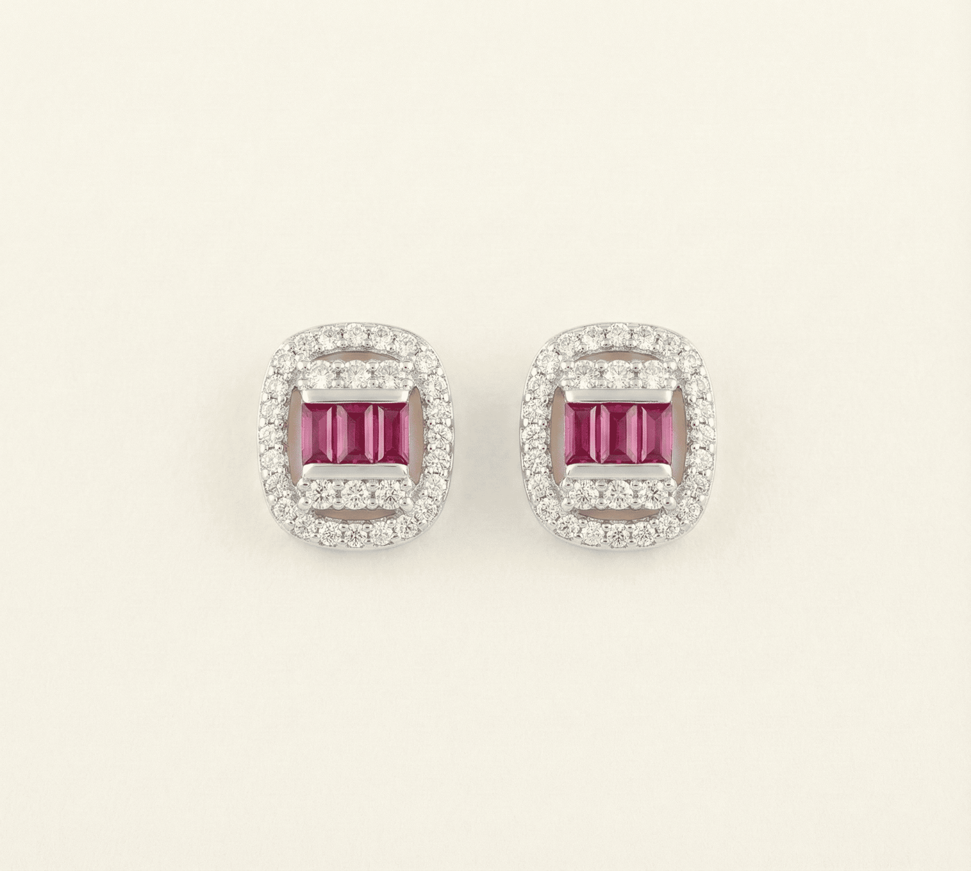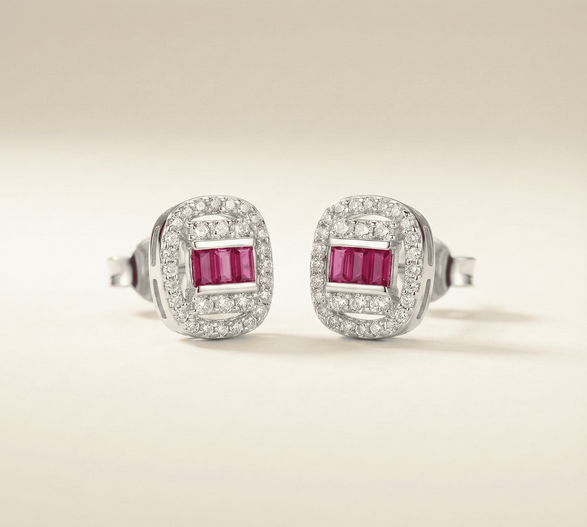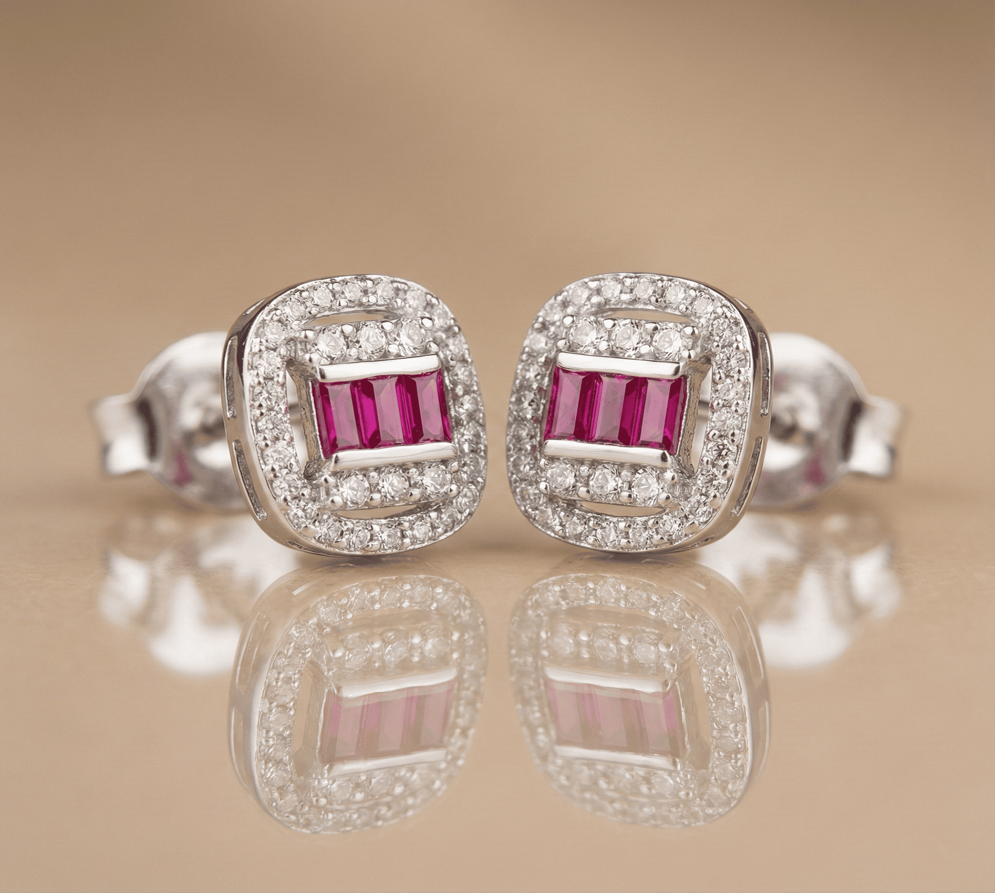 Discover a perfect harmony of vintage charm and modern vibrance. These handcrafted Cerise Baguette Halo Studs feature a striking trio of deep pink baguette-cut stones, encased in a shimmering halo of brilliant accents. Set in polished 925 sterling silver, they offer a sophisticated pop of colour that elevates everything from your daily professional attire to evening occasion wear.